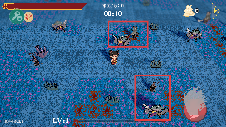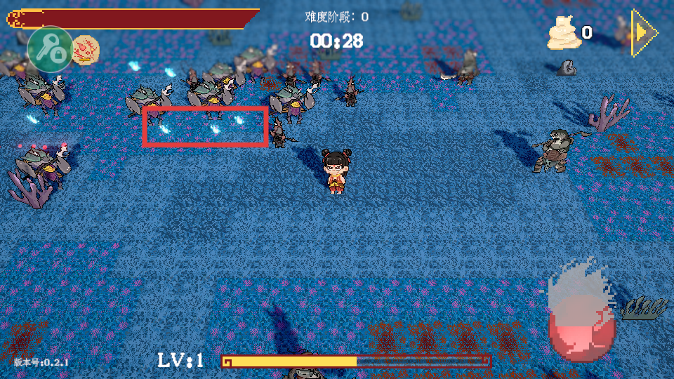 3、击杀敌人后会掉落经验球,操控角色进行拾取。