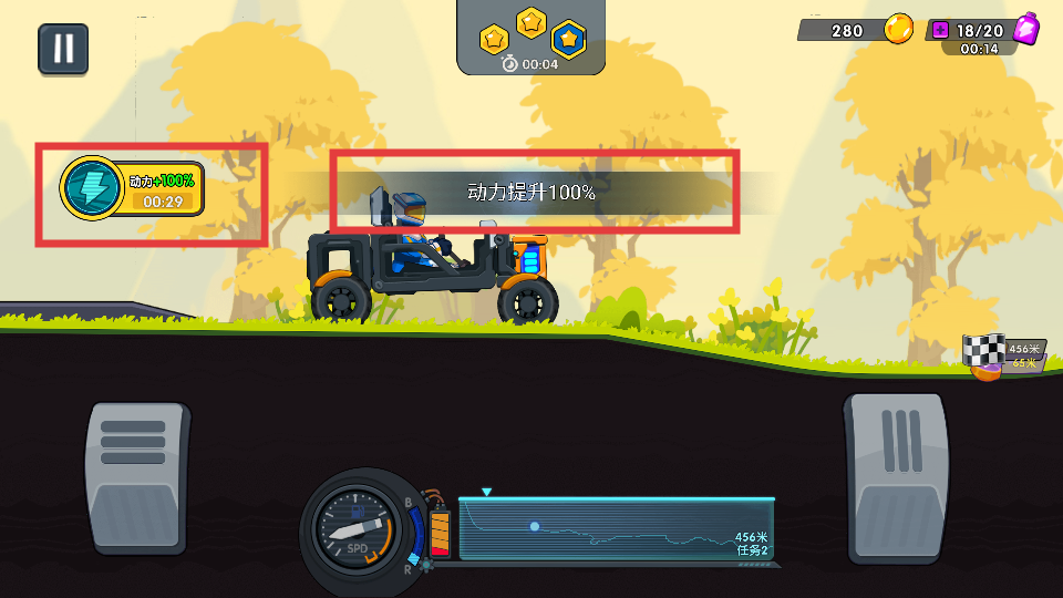 2、游戏中可获得动力提升buff,如动力+100%,利用该buff可提升车辆动力。