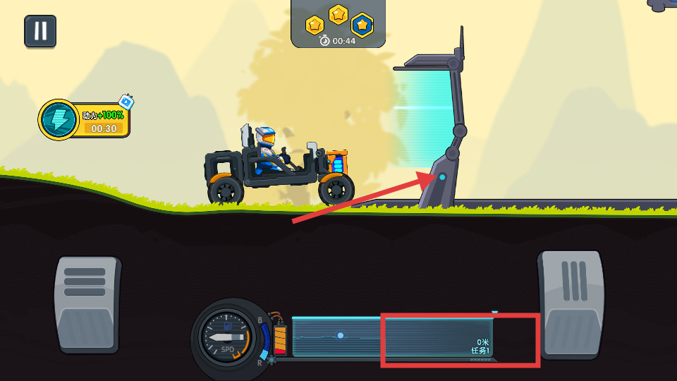 3、在行驶过程中,注意观察场景中的互动元素,如加速装置,利用这些元素可快速推进任务进度,完成行驶目标。