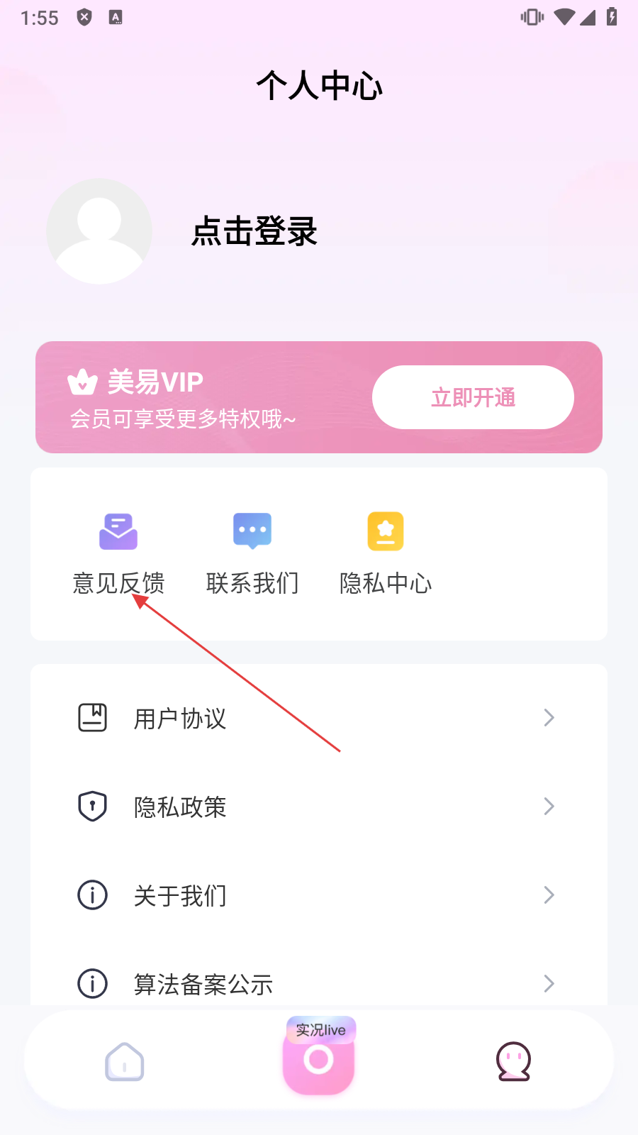 2、在个人中心页面,点击【意见反馈】,进入意见反馈页面。