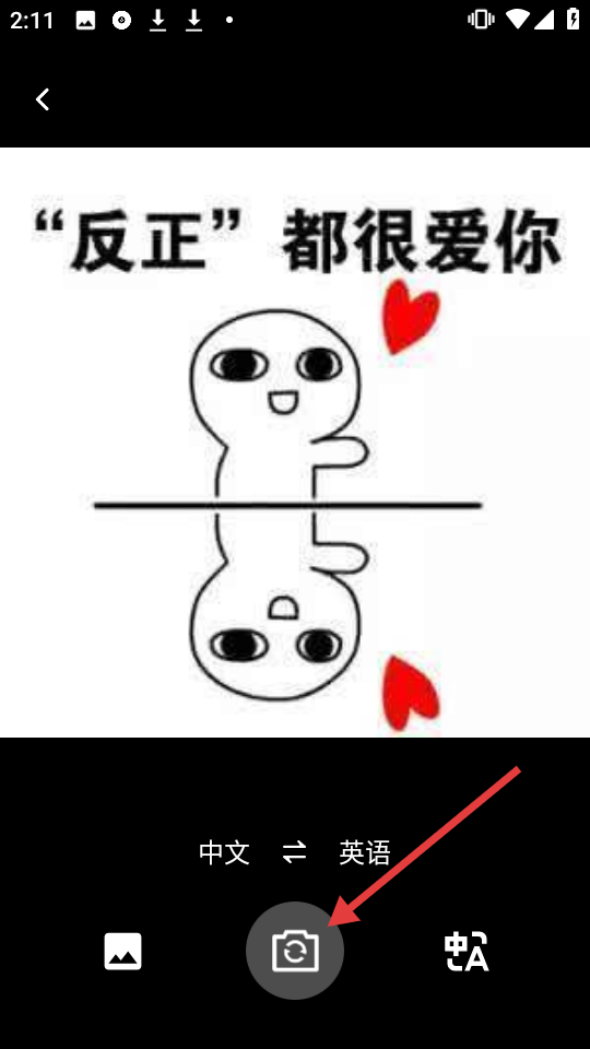 4、选择图片后,点击底部中间的识别按钮,即可进行中文到英语的图片翻译操作。