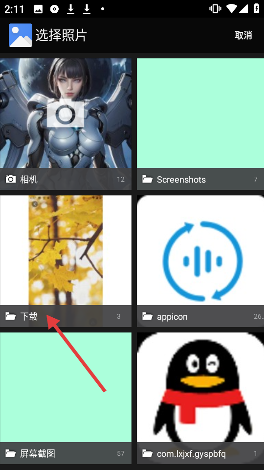 3、在照片选择界面中,点击【下载】文件夹,选择目标图片。