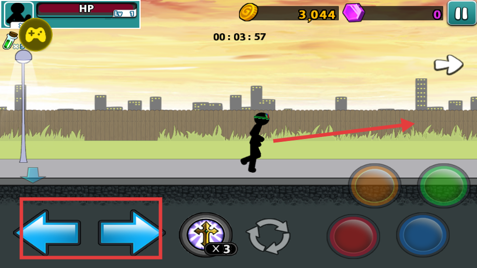 3、游戏中利用左侧的左右方向按钮控制角色移动,在场景中探索前进,寻找敌人进行战斗。