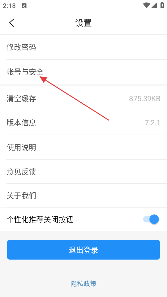 2、在设置界面中,点击【帐号与安全】选项,进入帐号安全相关设置页面。