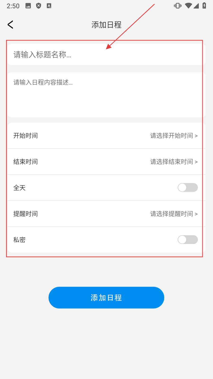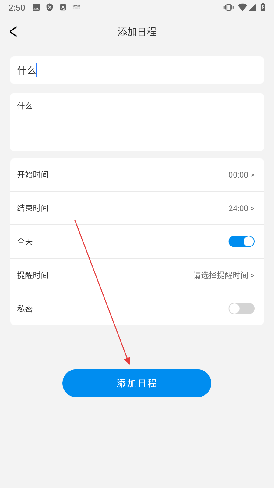 4、信息填写完成后,点击【添加日程】,即可完成日程添加操作。