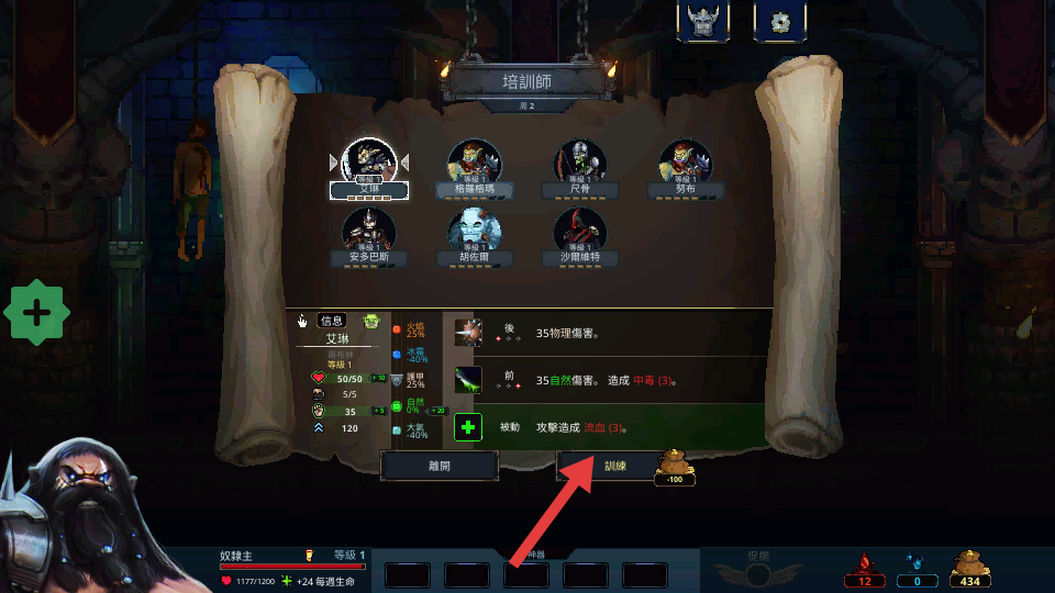 4、在培训师界面,选择技能培训,提升角色战斗属性。