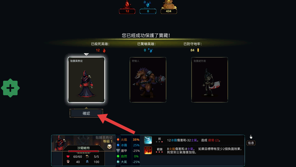 3、成功保护宝藏后,点击【确认】,获取新英雄。