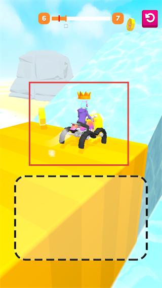 1、保持角色佩戴【皇冠】的领先状态,借助绘制的轨迹适配黄色平台地形,稳定推进收集金币。