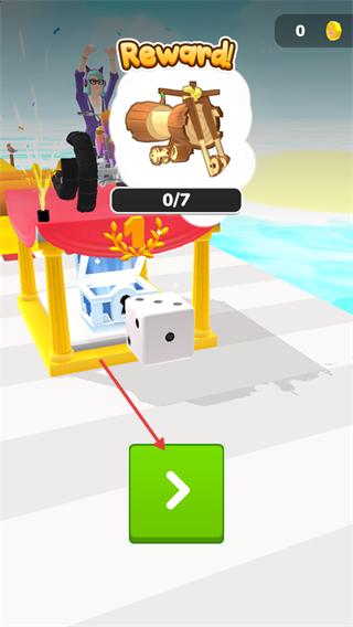 4、在【Reward!】界面,点击绿色箭头推进,积累进度解锁【0/7】对应的奖励载具。