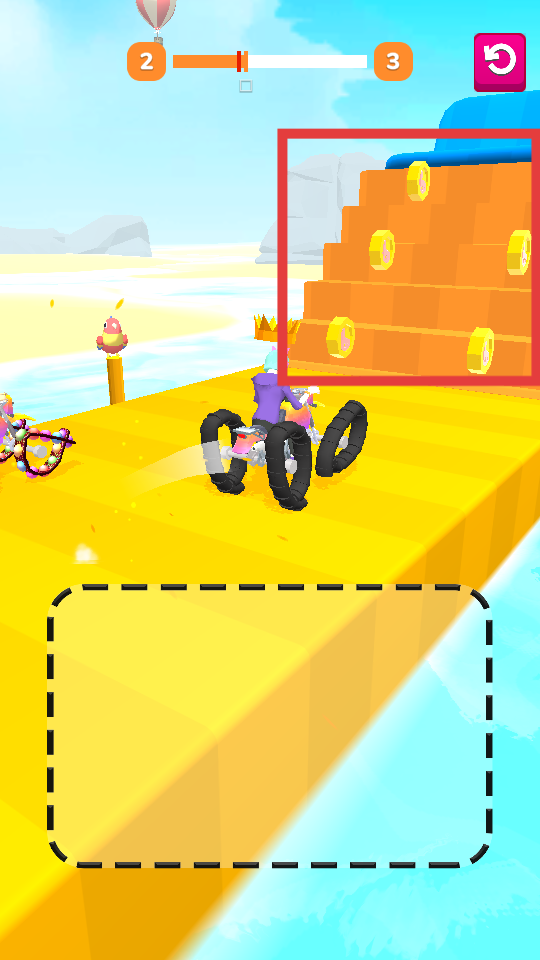 4、在赛道上收集金币,积累资源,同时应对复杂地形,顺利完成关卡挑战。