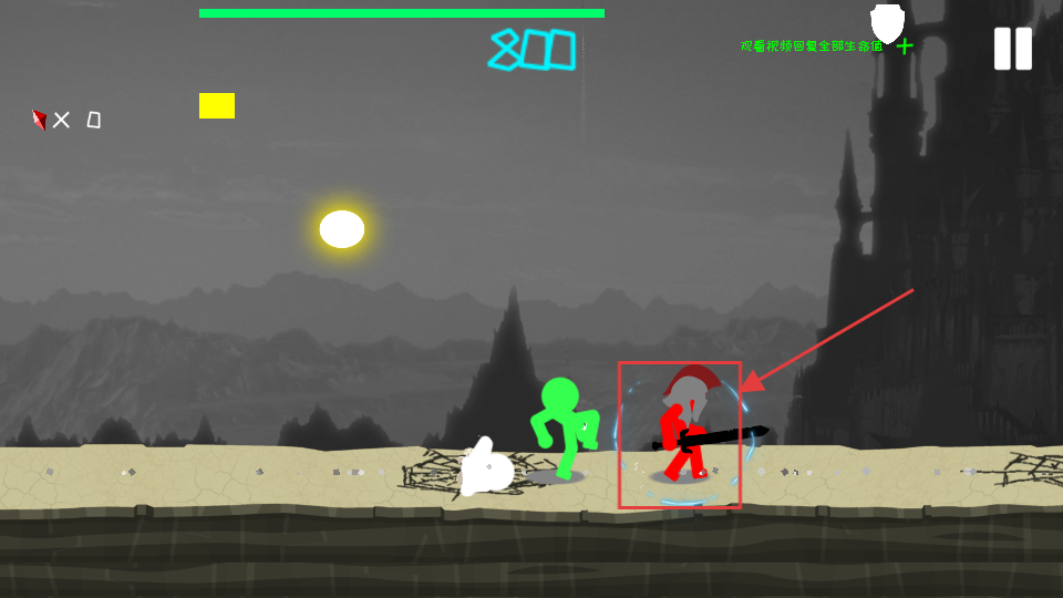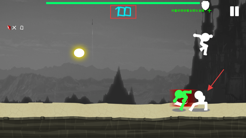 3、操控【绿色】小人近战攻击【白色】敌人,积累伤害获取【100】分数,提升作战胜率与效率。