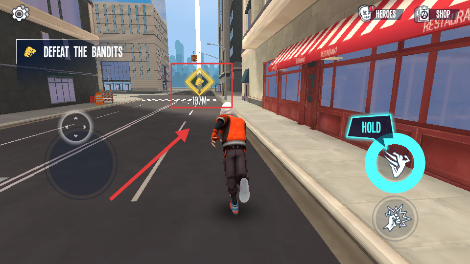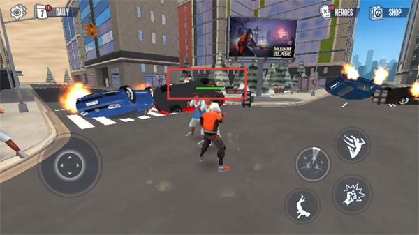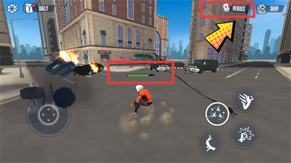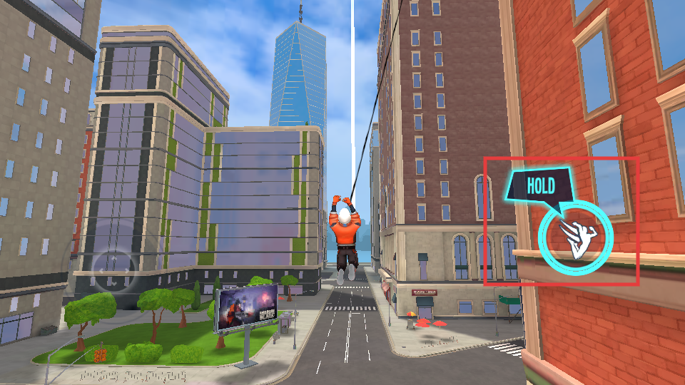 1、游戏中可长按右侧的技能按钮进行摆荡移动,在城市建筑间穿梭,快速移动到目标地点,提升移动效率。