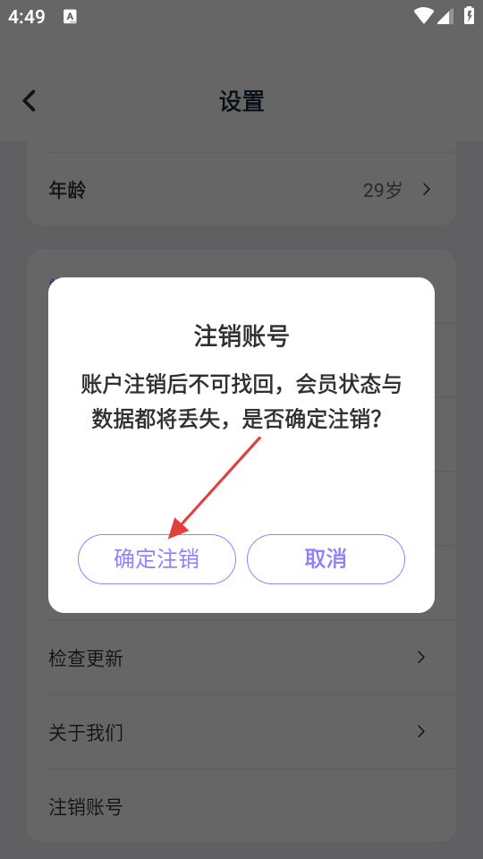 4、在注销账号确认弹窗中,点击【确定注销】按钮,完成账号注销操作。