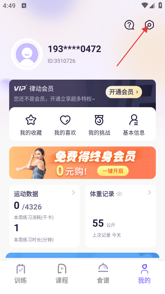 2、在个人中心页面中,点击右上角的设置图标,进入设置页面。