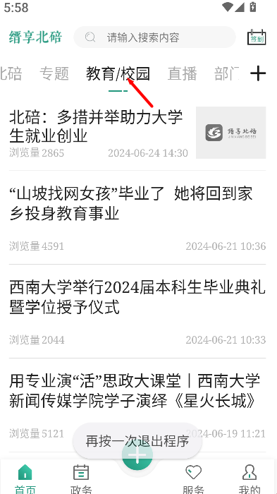 3、返回首页或在栏目中选择“校园教育”相关提要入口,点击后可查看学校活动通知、教育资讯与学习信息内容。
