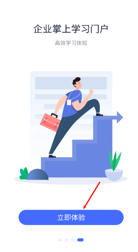 1、打开《E学苑》App后,在首页界面点击“立即体验”,可进入功能展示与基础页面预览内容。