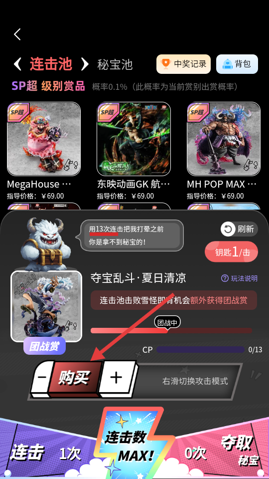 2、在连击池页面,点击“购买”可参与连击池活动。