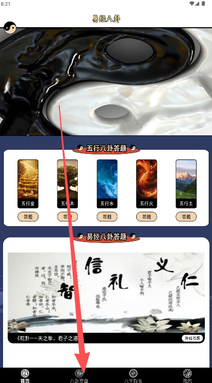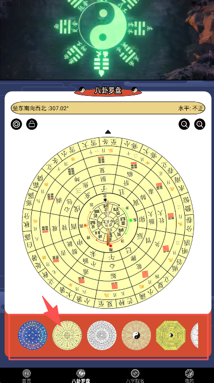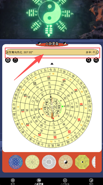 1、在首页底部导航栏点击"八卦罗盘"进入功能界面。