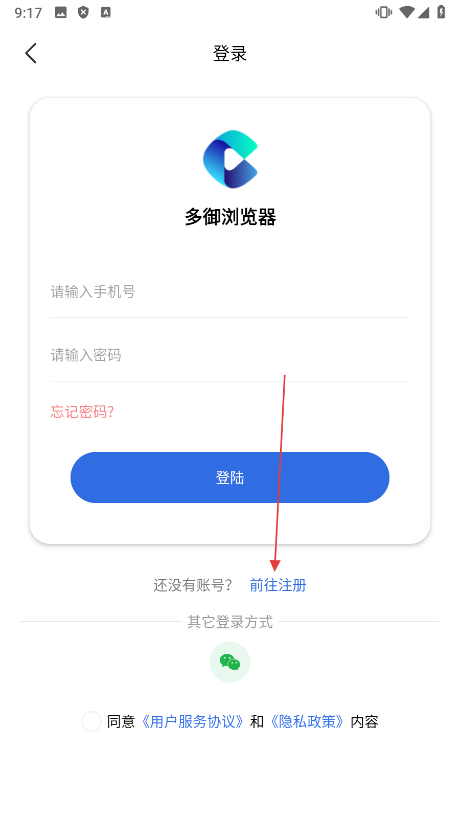 3、在登录页面,点击【前往注册】,进入注册页面。