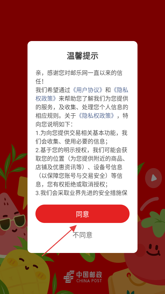 1、在温馨提示弹窗中点击【同意】,进入主界面。