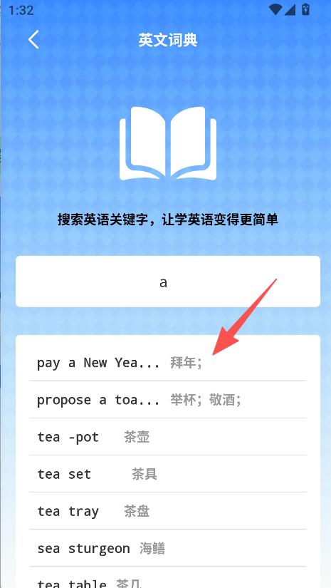 1、提供英文词典功能,支持输入英文单词查询释义,满足英语词汇学习中的查词需求。