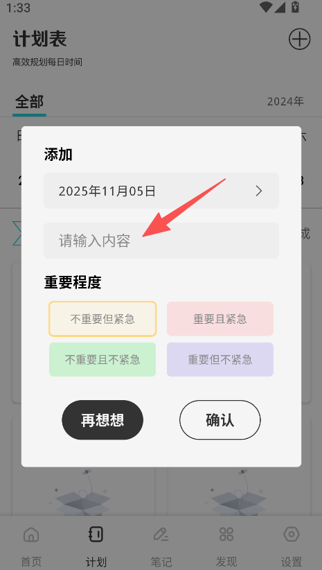3、选择计划重要程度,点击确认完成计划添加。