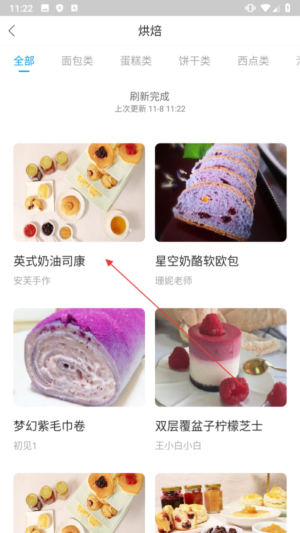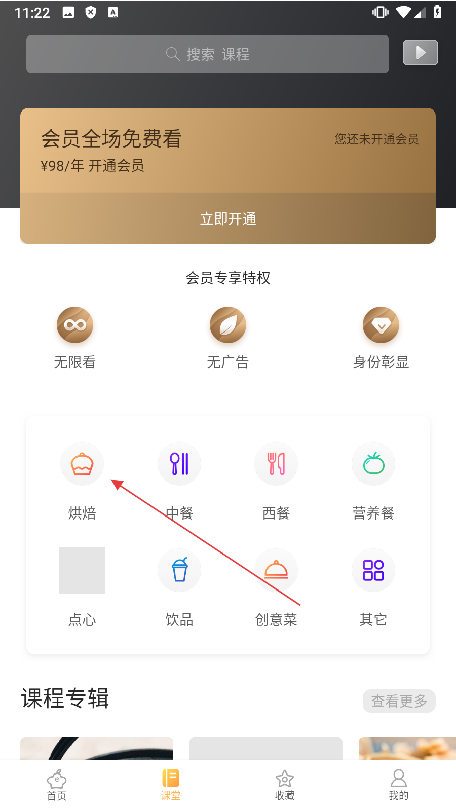 2、在页面中,点击【烘焙】,进入烘焙课程列表页面。