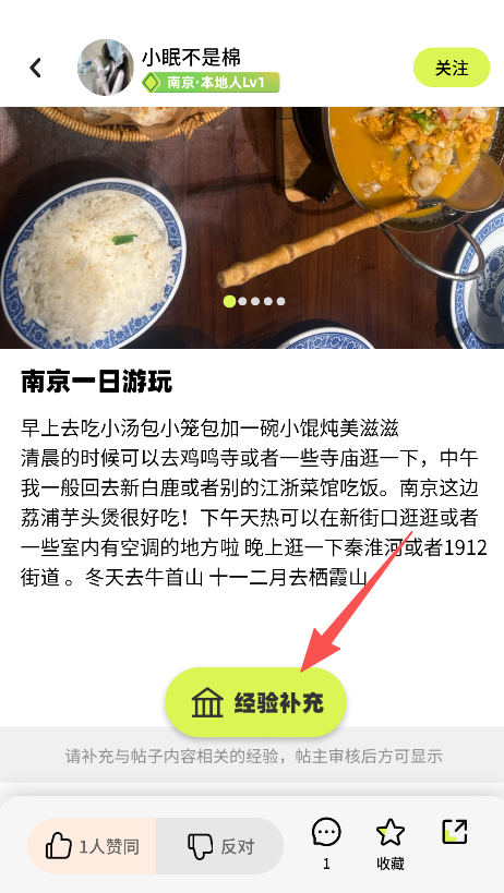 2、在攻略页面,点击经验补充,添加相关游玩经验。