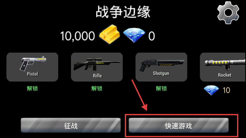 1、点击【快速游戏】进入对战,用已解锁的【Pistol】-【Rifle】-【Shotgun】提升战力,快速匹配对手。