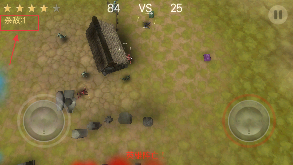 3、双摇杆操作走位,躲敌人攻击,瞄准【Pistol】射击,借石墙等地形掩护,注意敌人位置。