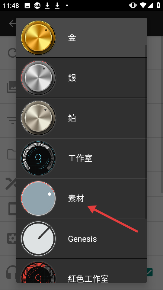 4、在主题选择界面,点击【素材】主题,应用该主题。