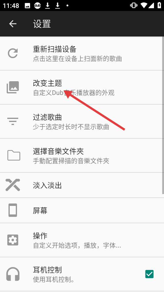 3、在设置界面,点击【改变主题】选项,进入主题选择界面。