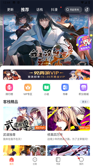 1、在漫客栈APP首页,点击右下角【我的】,进入个人中心页面。