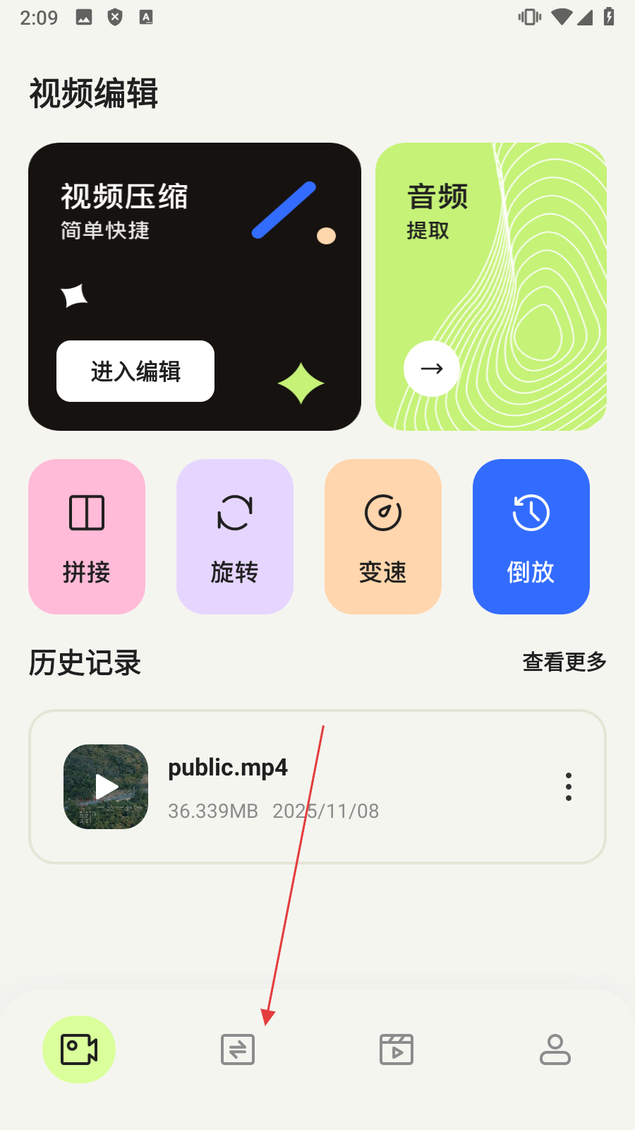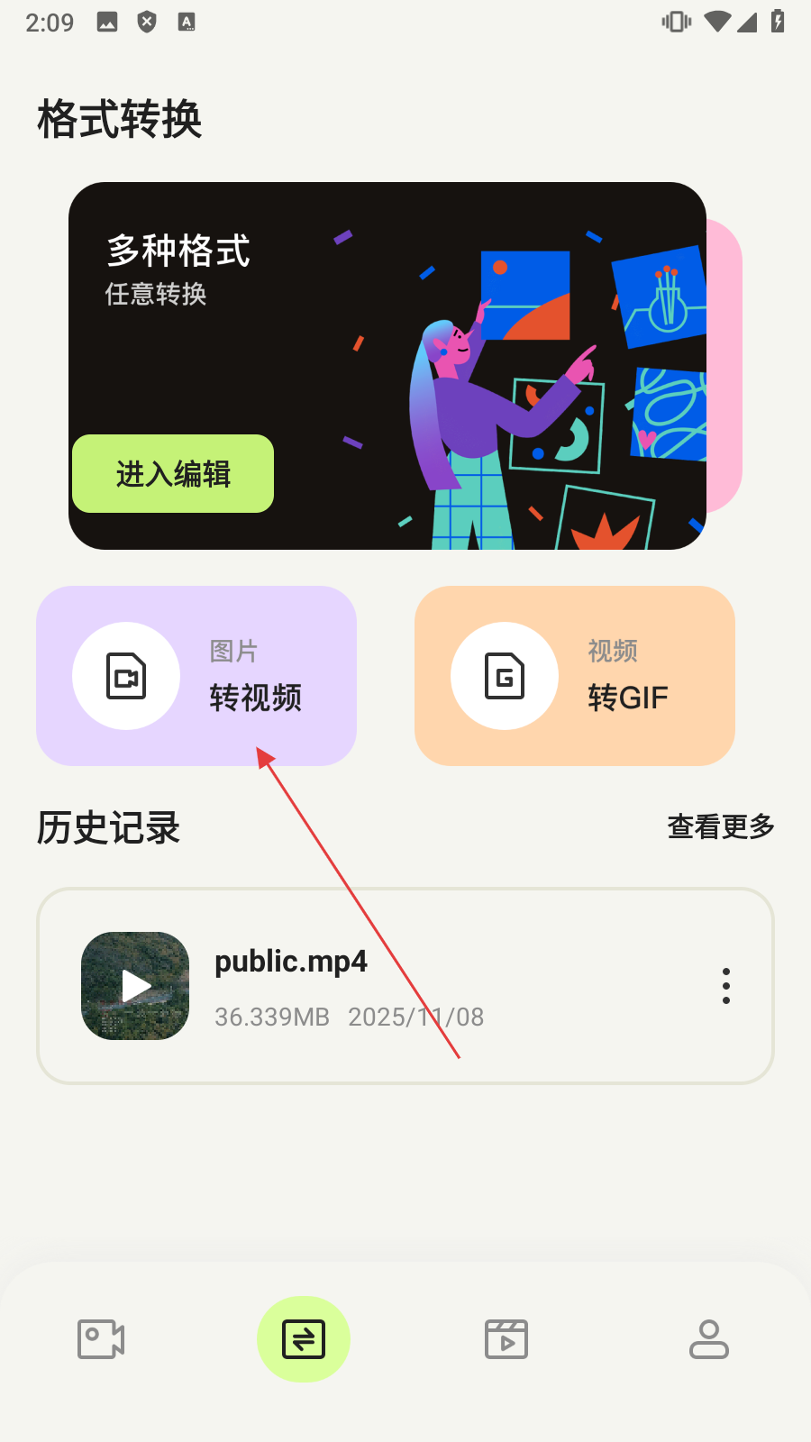 1、点击底部【格式转换图标】,进入格式转换页面。
