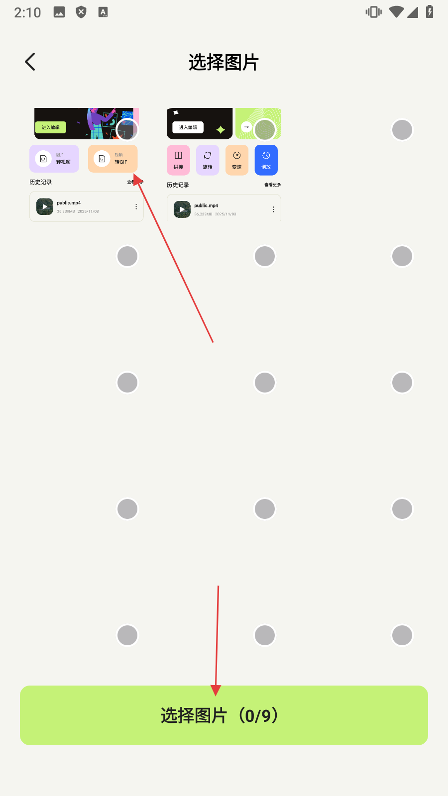 2、在页面中,点击【图片转视频】,进入图片选择页面。