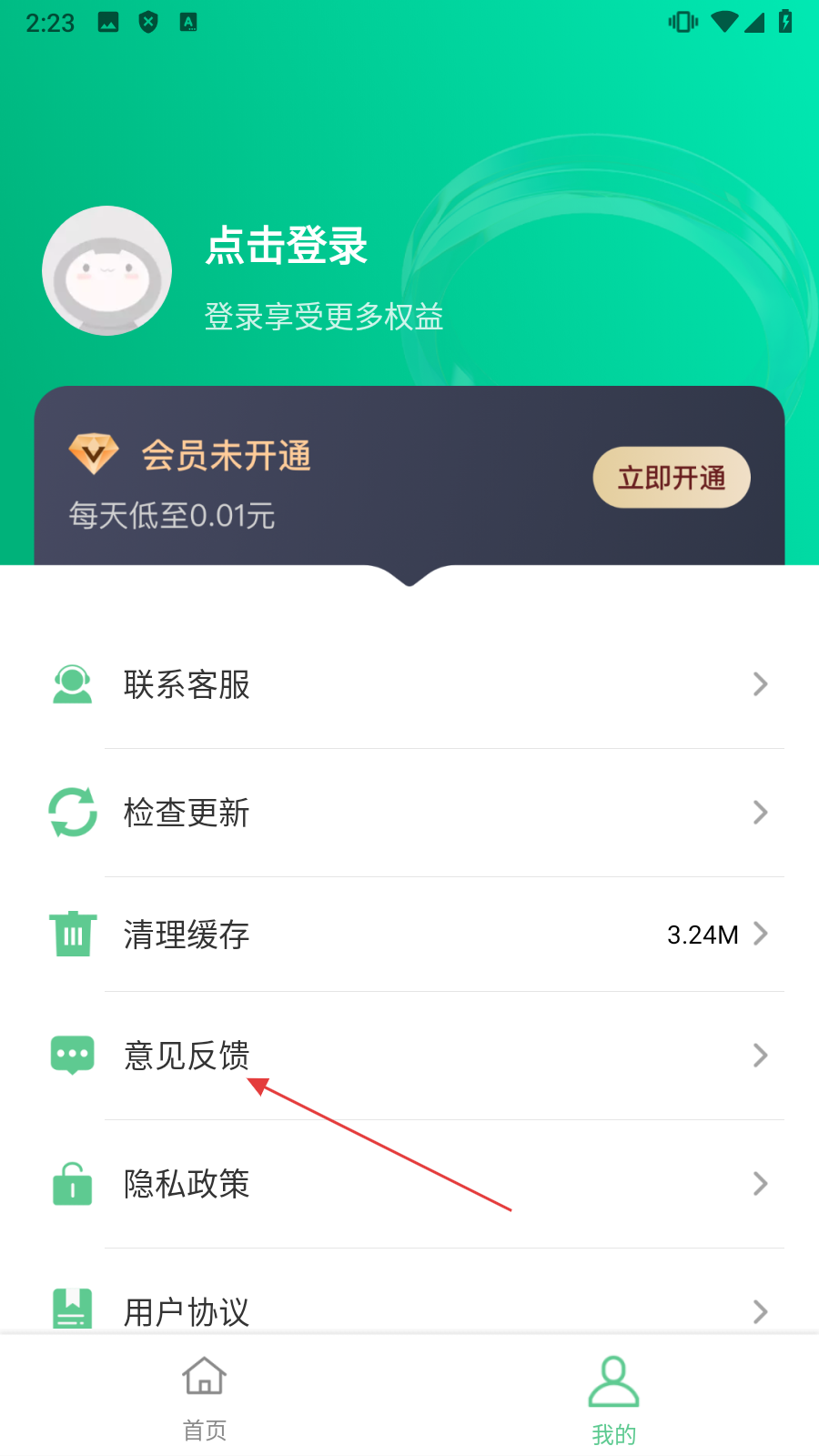 2、在页面中,点击【意见反馈】,进入意见反馈页面。