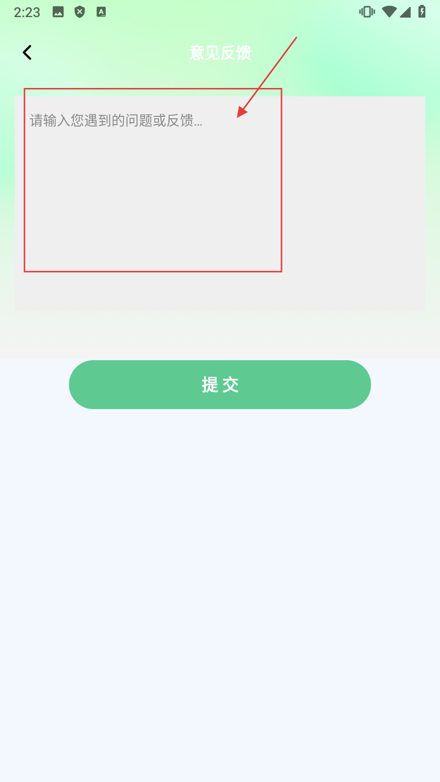 3、在页面中输入【反馈内容】,准备提交反馈。