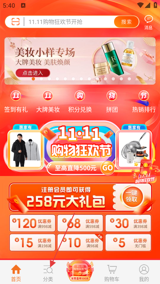 1、点击界面底部的【分类】选项,可进入商品分类页面。