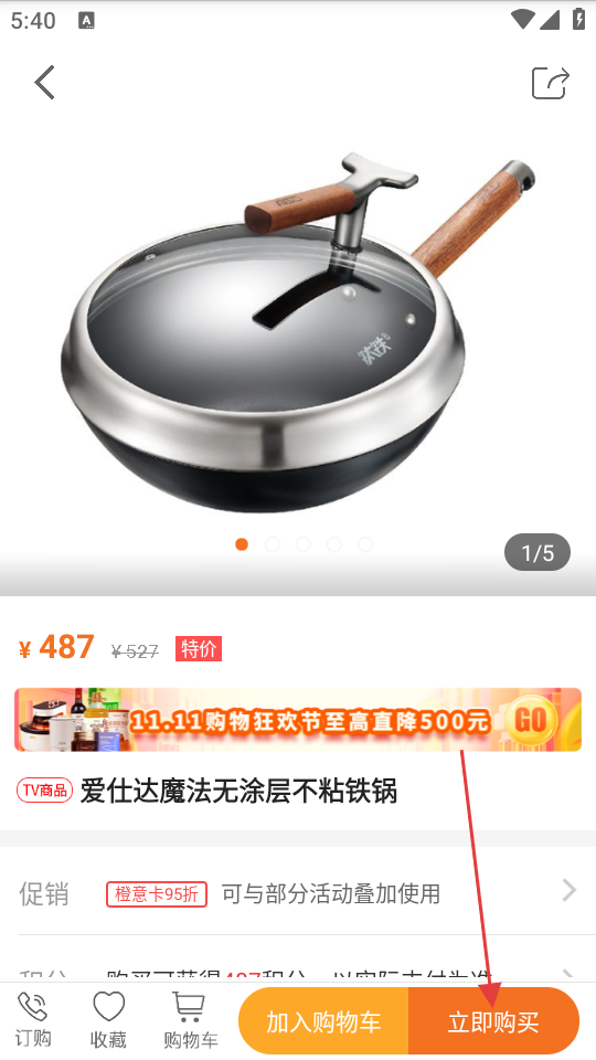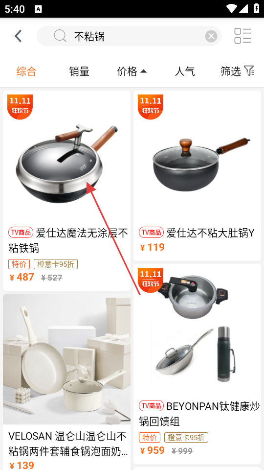 3、在不粘锅商品列表页面中,点击目标商品,可进入商品详情页面。