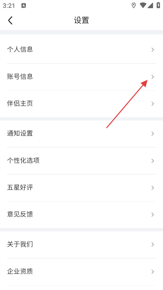 2、在设置页面中,点击【账号信息】选项,可进入账号信息界面。