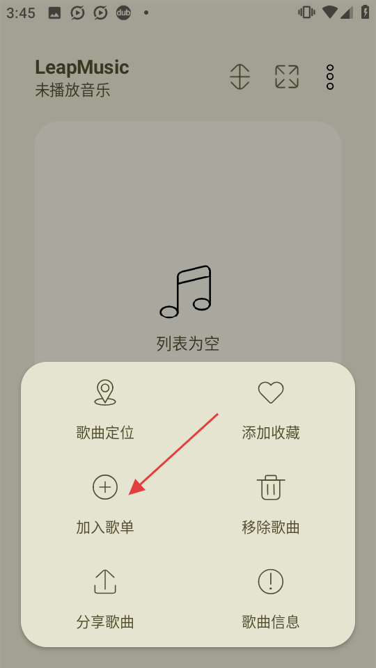 4、在弹出的操作菜单中,点击【加入歌单】可将歌曲加入歌单。