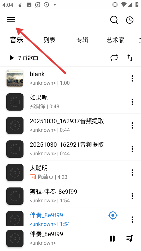 1、在音乐应用中,点击左上角三横线菜单图标,展开侧边栏。