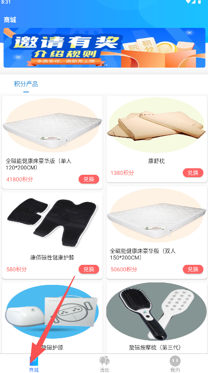 1、设有专门的积分商城页面,分类展示所有可供兑换的实物商品及其所需积分。
