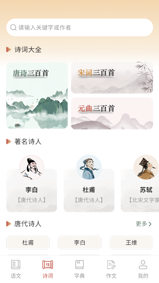 诗词通是一款汇聚古今的经典诗词,涵盖《诗经》《楚辞》至唐宋名篇,诗词库储量丰富。支持按朝代、作者、主题检索,快速定位所需篇目。每首作品附创作背景、字词释义与艺术赏析,助力理解内涵。设置每日一诗推送,搭配诵读音频,便于日常积累。内置飞花令、诗词接龙等趣味玩法,以竞技形式增添乐趣。界面简约清雅,操作直观便捷,兼顾学习与休闲需求。无论是沉浸品读、背诵积累,还是以诗会友,皆可在此感受古典文学的韵律之美,成为随身的诗词文化宝库。