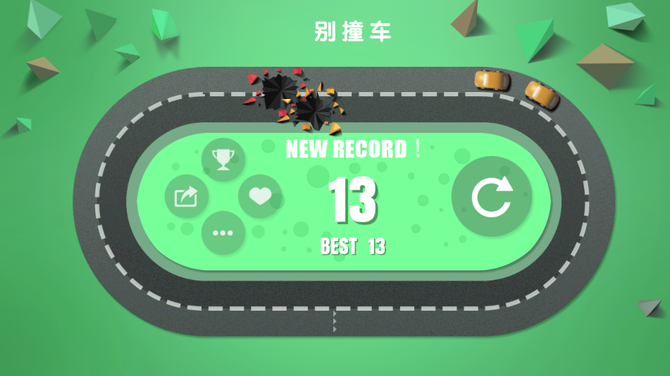 别撞车是一款以躲避碰撞为核心的休闲小游戏,规则简洁纯粹。红色小车在环形赛道行驶,需避开其他车辆,通过点击屏幕任意位置切换车道。赛道上的车辆会随机变道或掉队,考验反应速度与观察力。碰撞即结束游戏,以成功避让的次数累计分数,坚持越久得分越高。界面以绿色为主调,简洁无多余装饰,聚焦核心操作。单局时长灵活,适配碎片时间,在紧张避让与重复挑战中带来轻松娱乐体验。
