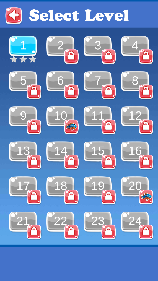 2、选择关卡界面,先通过第一关卡可解锁下一关卡。