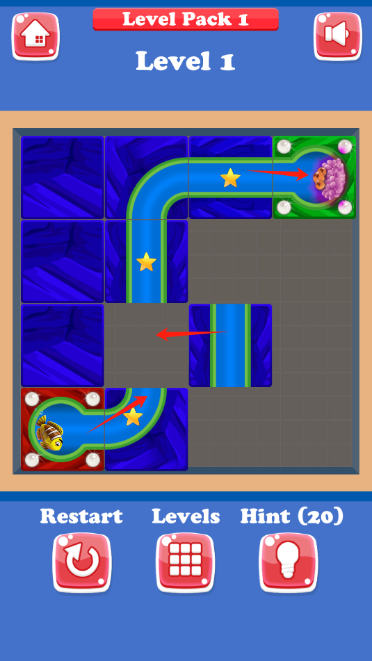 3、关卡中的小鱼需通过管道吃到食物,点击移动管道缺失的部位到指定位置即可。