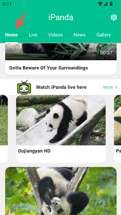 1、板块分类清晰,涵盖Home、Live、Videos、News、Gallery,覆盖熊猫内容的直播、视频、新闻、图片等全维度,满足熊猫爱好者多样浏览需求。