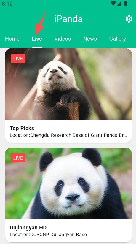 1、具备熊猫直播功能,进入Live板块可观看不同基地熊猫实时动态,近距离观察熊猫日常活动。