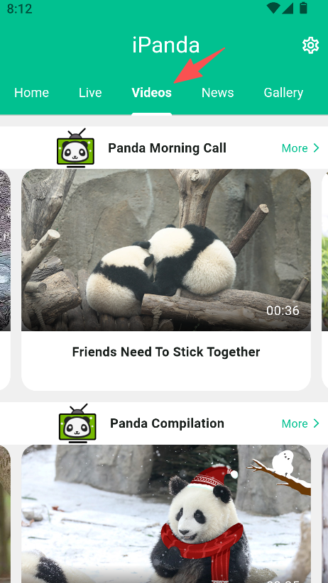 2、提供熊猫视频浏览功能,Videos板块收录多样熊猫视频,可随时观看熊猫趣味内容、成长历程。